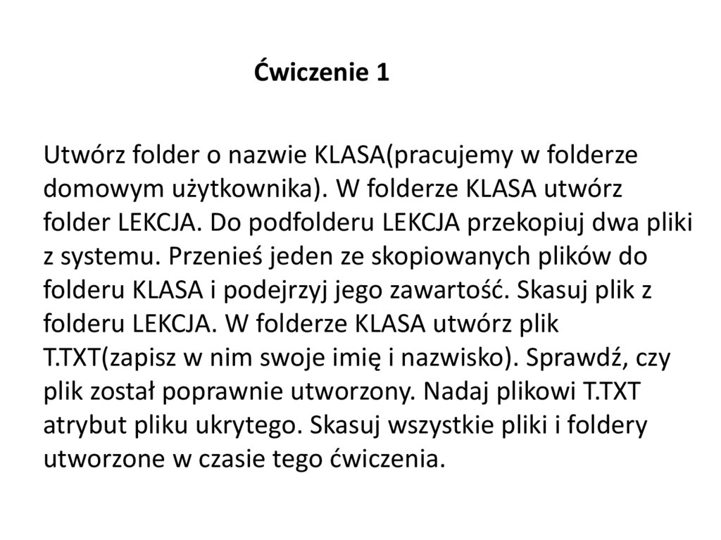 Ćwiczenie 1Utwórz folder o nazwie KLASA(pracujemy w folderze