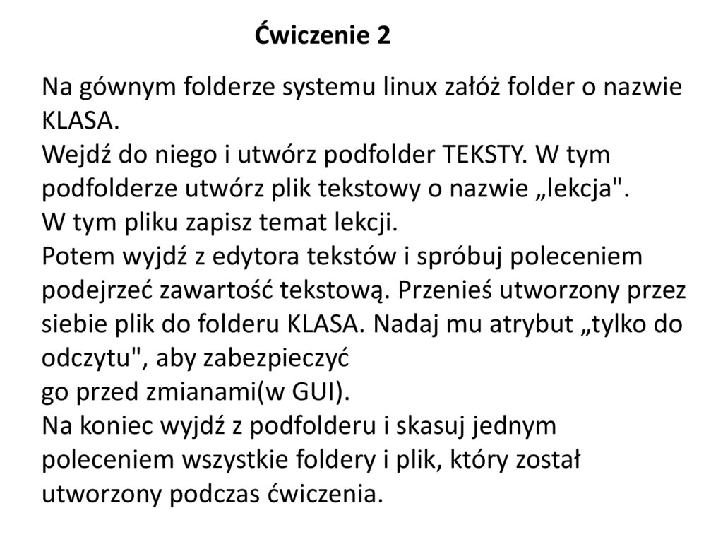 Ćwiczenie 2Na gównym folderze systemu linux załóż folder o nazwie