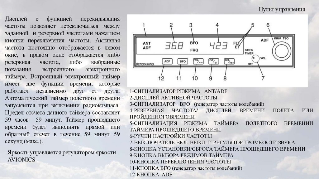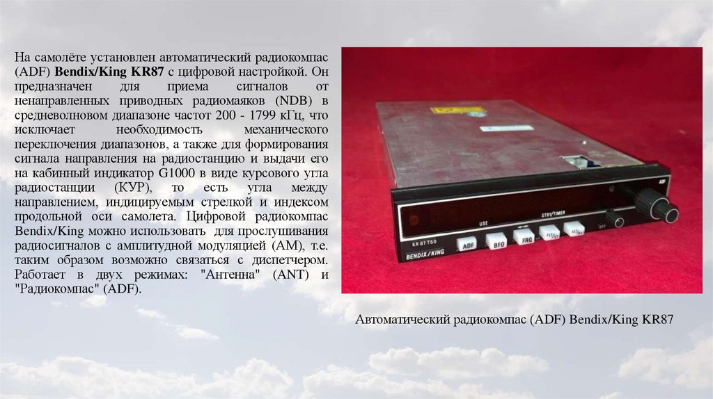 На самолёте установлен автоматический радиокомпас(ADF) Bendix/King KR87 c цифровой настройкой. Он