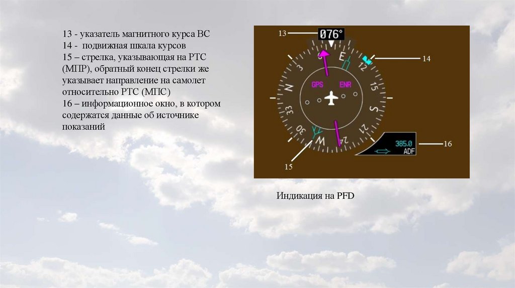 13 - указатель магнитного курса ВС14 - подвижная шкала курсов