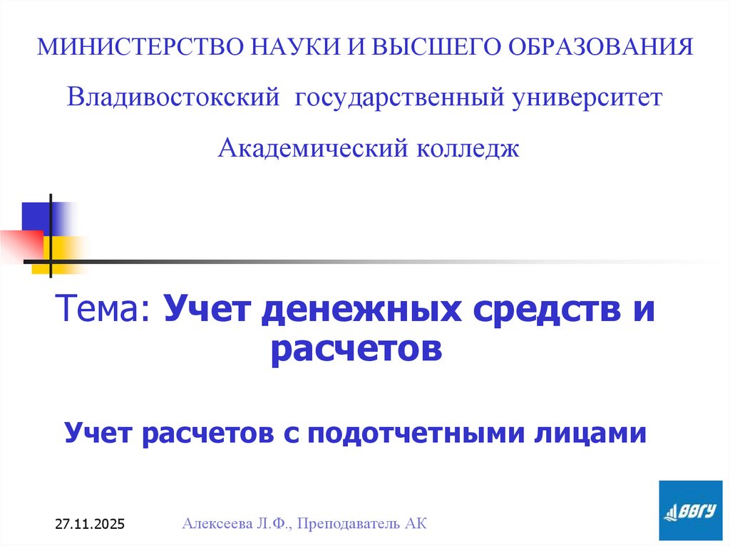 1. МИНИСТЕРСТВО НАУКИ И ВЫСШЕГО ОБРАЗОВАНИЯ Владивостокский государственный университет Академический колледж