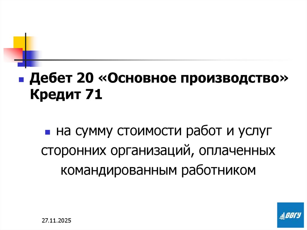 Дебет 20 «Основное производство»Кредит 71