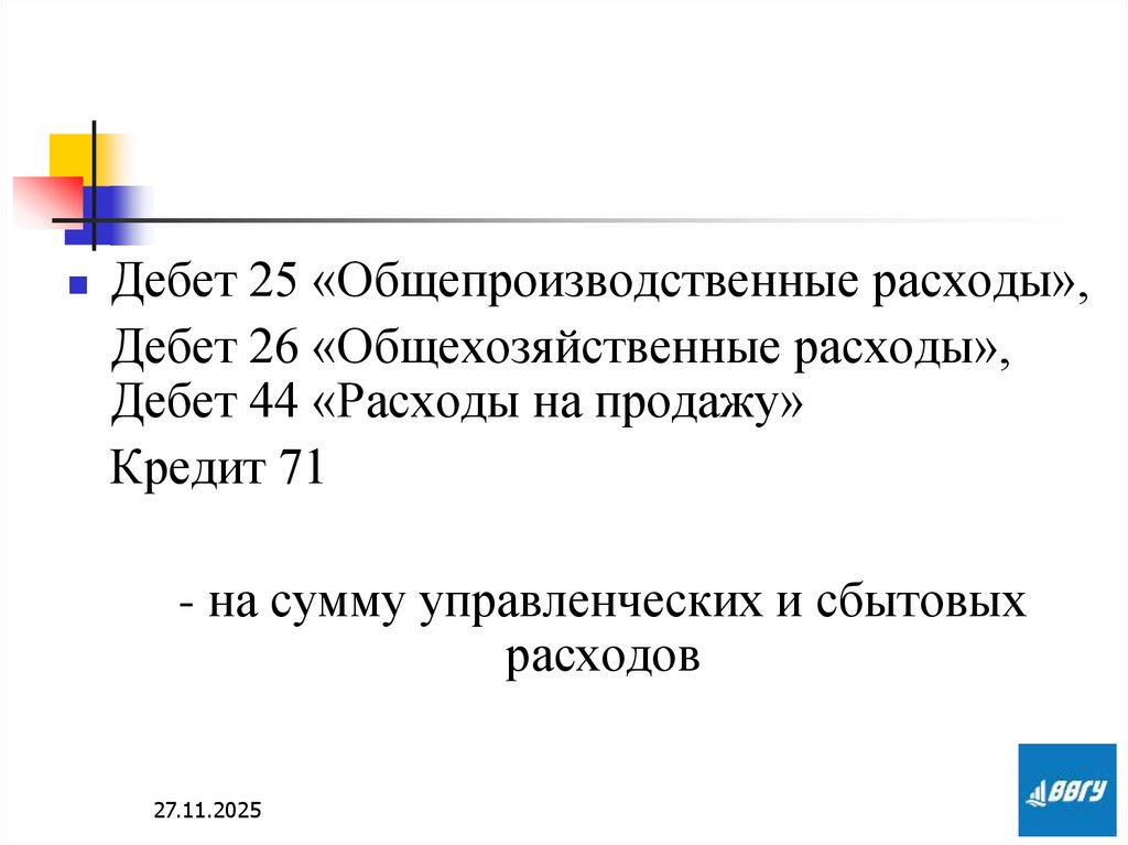 Дебет 25 «Общепроизводственные расходы»,Дебет 26 «Общехозяйственные расходы»,