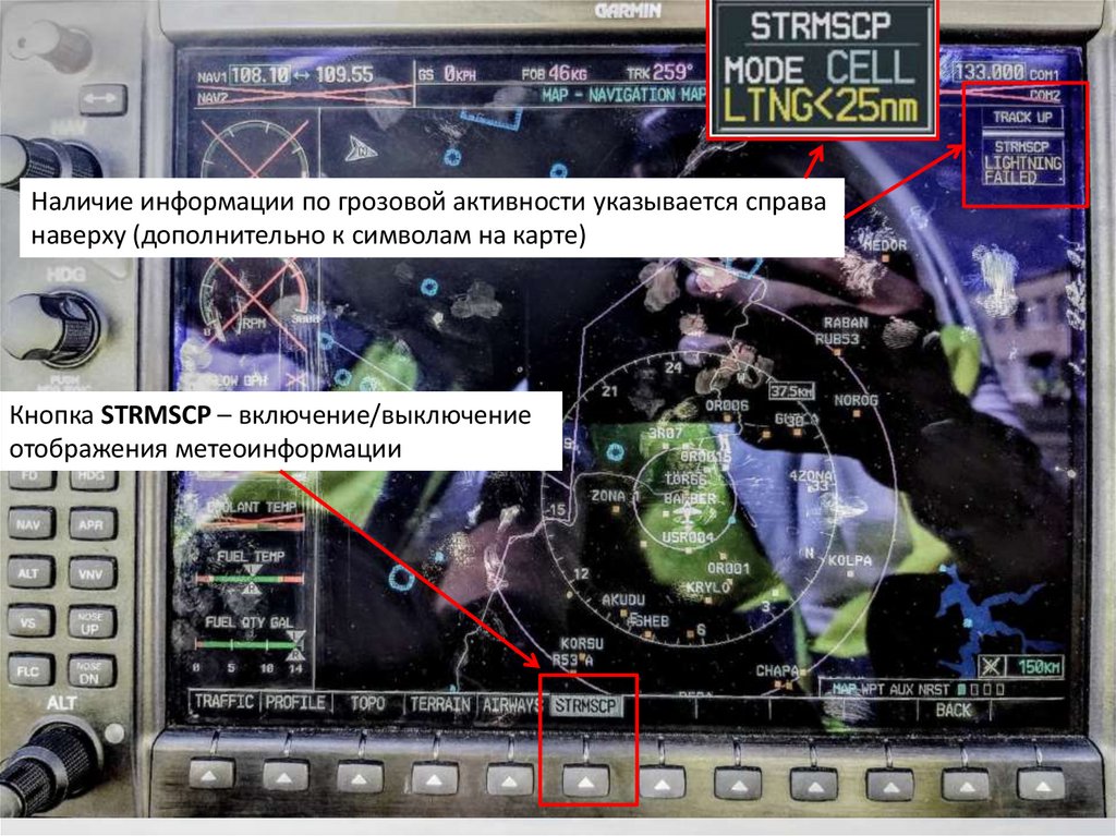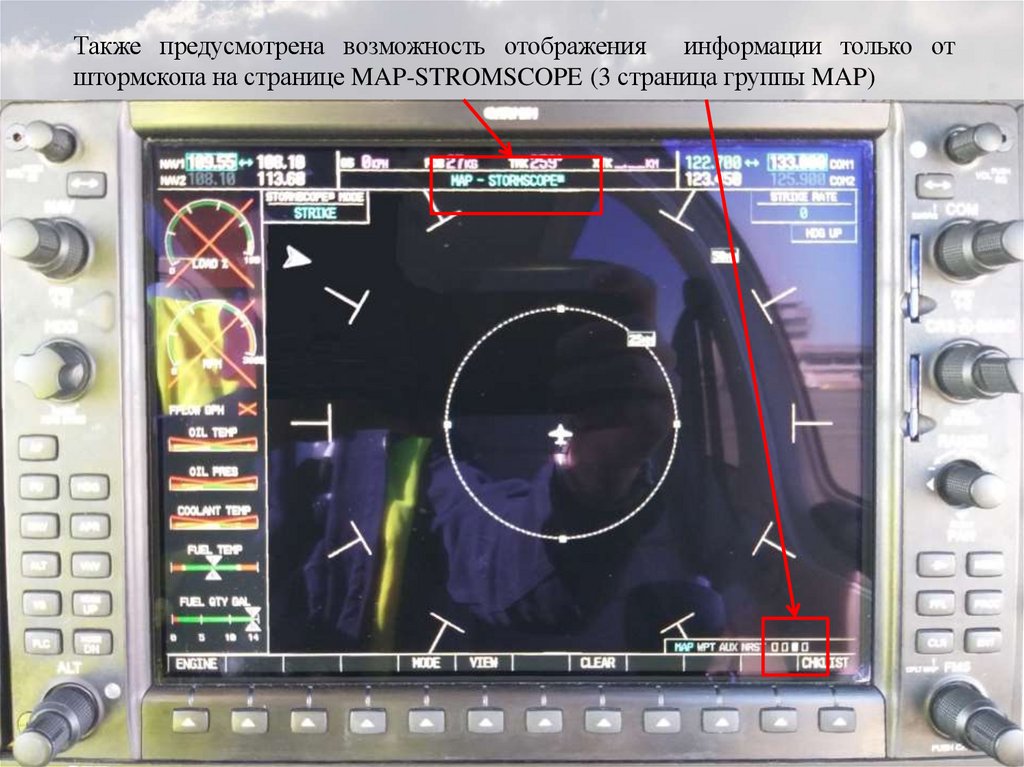Также предусмотрена возможность отображения информации только отштормскопа на странице MAP-STROMSCOPE (3 страница группы MAP)