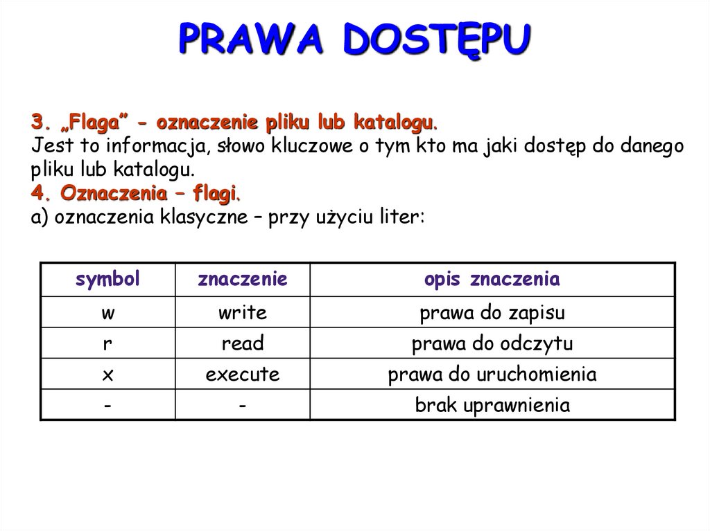 PRAWA DOSTĘPU3. „Flaga” - oznaczenie pliku lub katalogu.