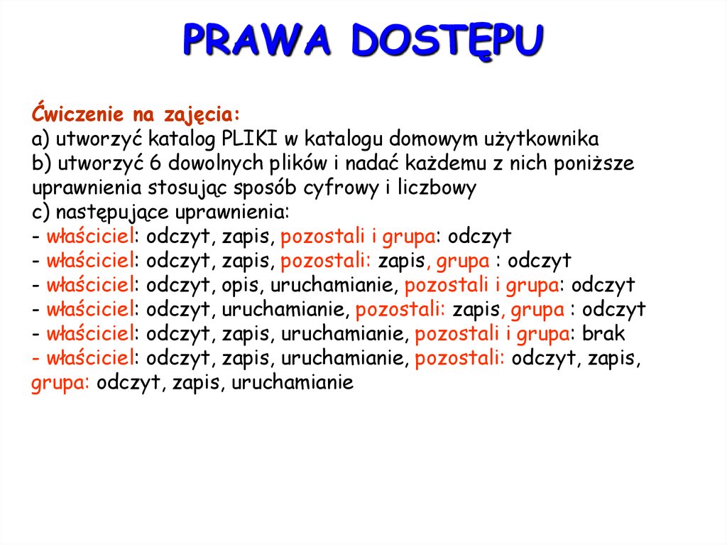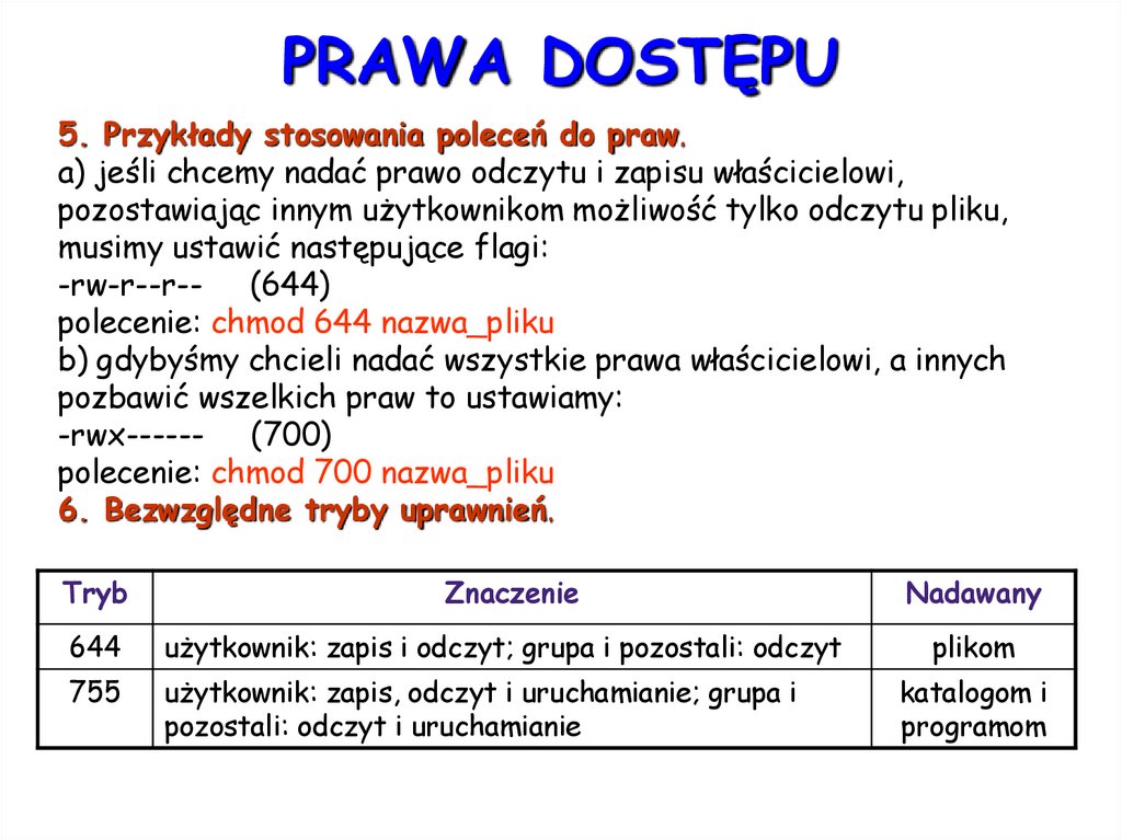 PRAWA DOSTĘPU5. Przykłady stosowania poleceń do praw.