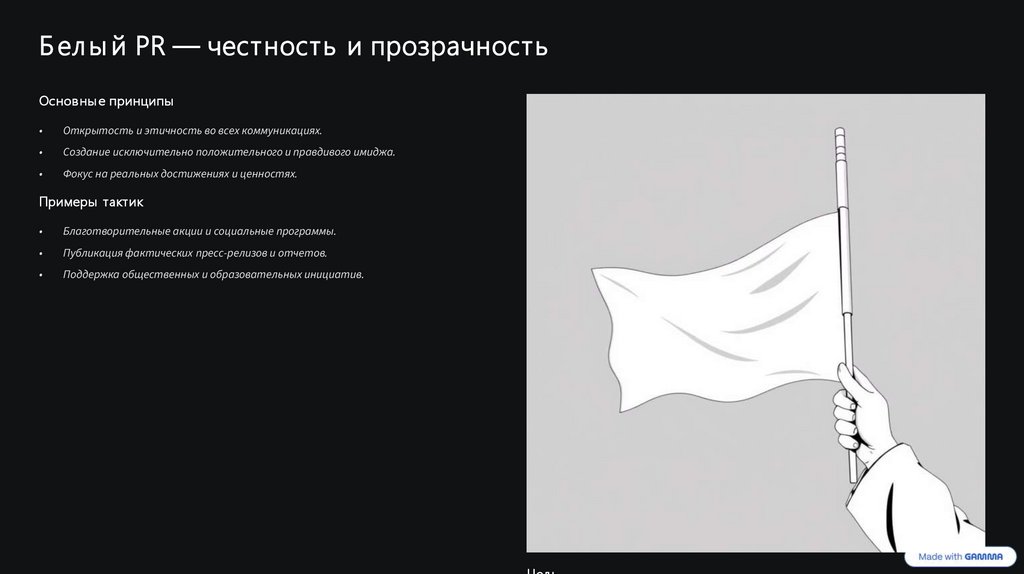 Б ел ы й PR — честность и прозрачностьОсновны е принципы