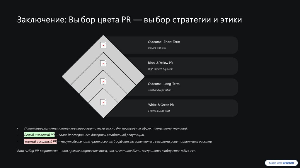 Заключение: Вы бор цвета PR — в ы бор стратегии и этикиOutcome: Short-Term