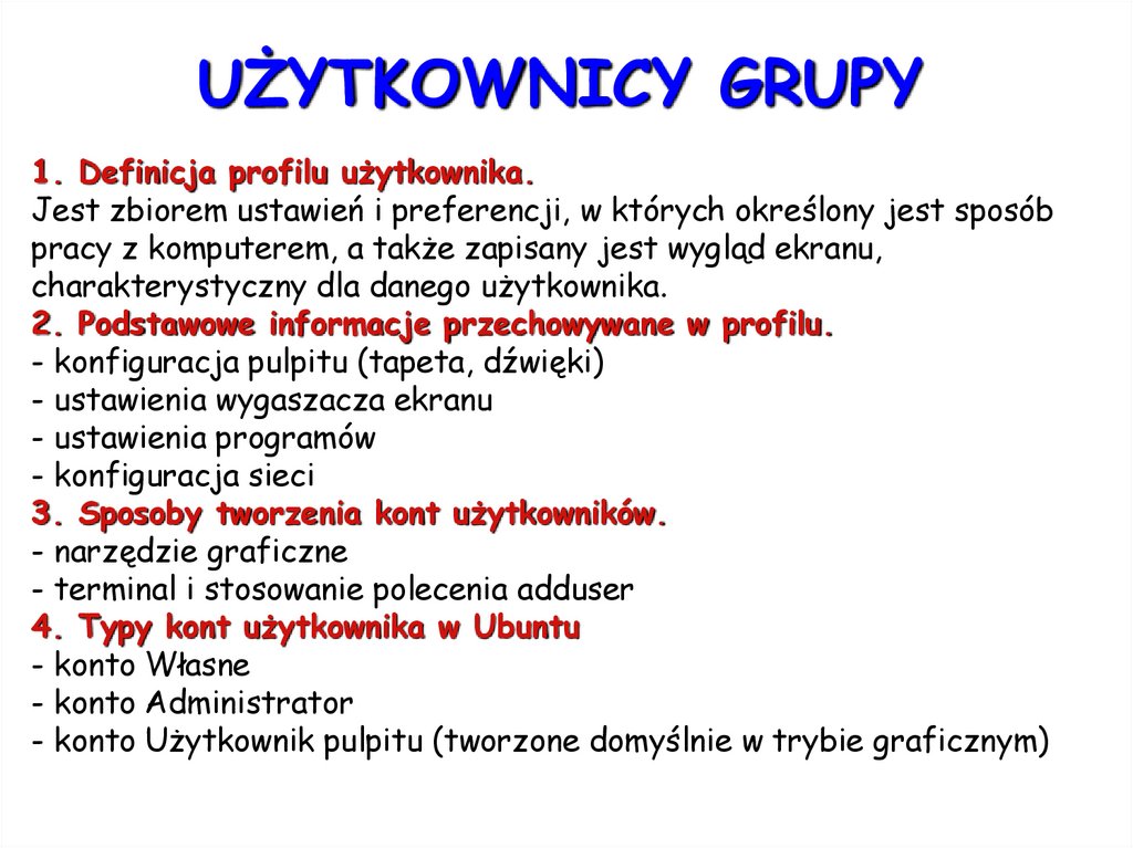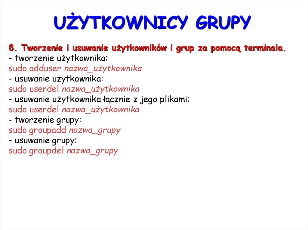 UŻYTKOWNICY GRUPY8. Tworzenie i usuwanie użytkowników i grup za pomocą terminala.