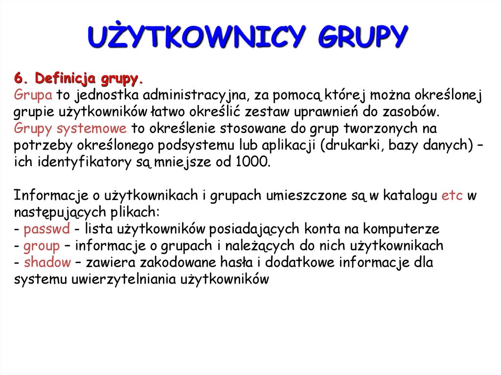 UŻYTKOWNICY GRUPY6. Definicja grupy.