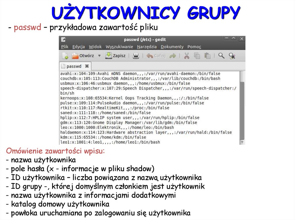 UŻYTKOWNICY GRUPY- passwd – przykładowa zawartość pliku