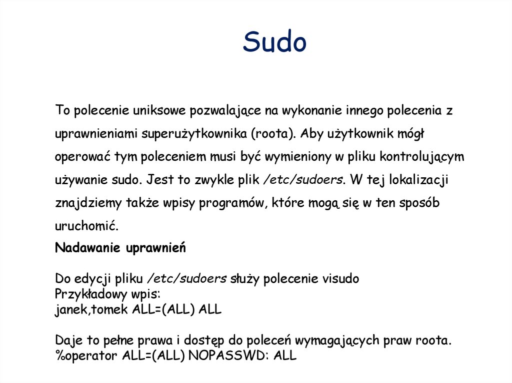 SudoTo polecenie uniksowe pozwalające na wykonanie innego polecenia z