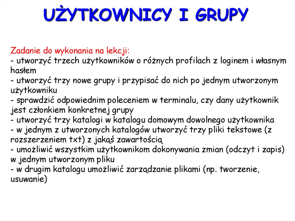 UŻYTKOWNICY I GRUPYZadanie do wykonania na lekcji: