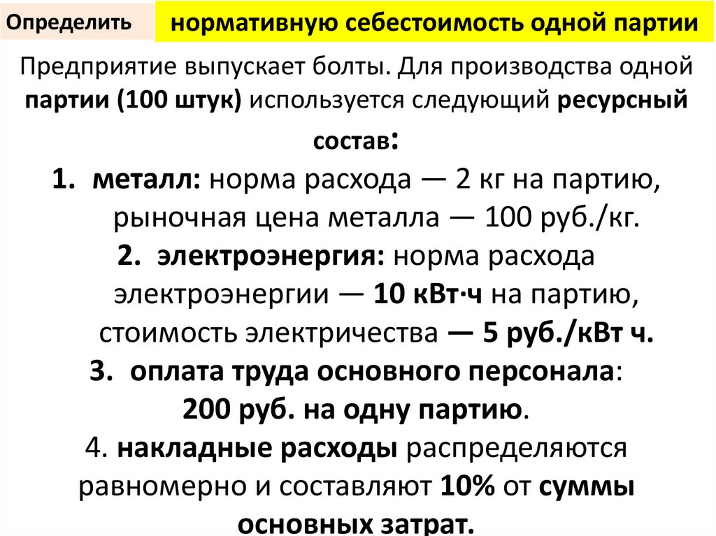 Определитьнормативную себестоимость одной партии