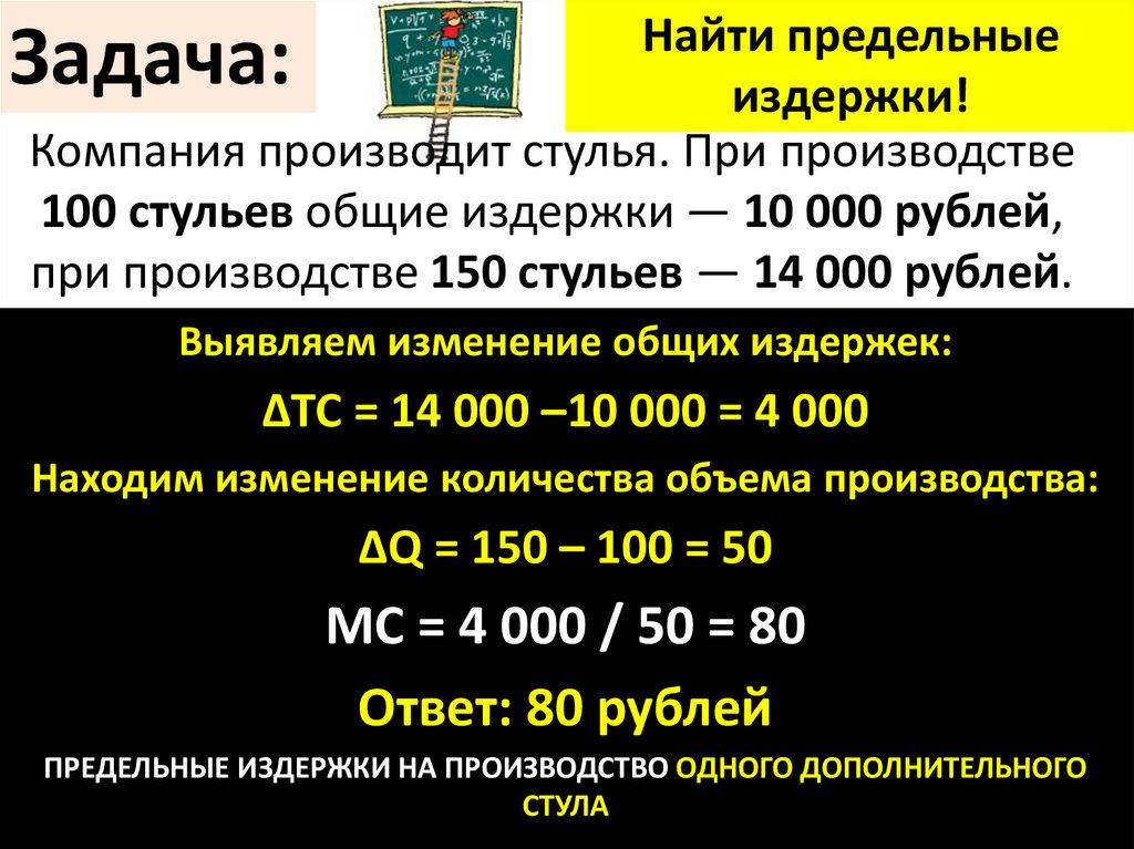 100 стульев общие издержки — 10 000 рублей,