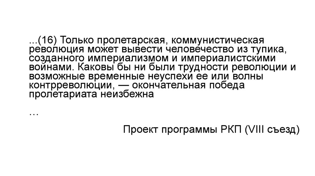 ...(16) Только пролетарская, коммунистическаяреволюция может вывести человечество из тупика,