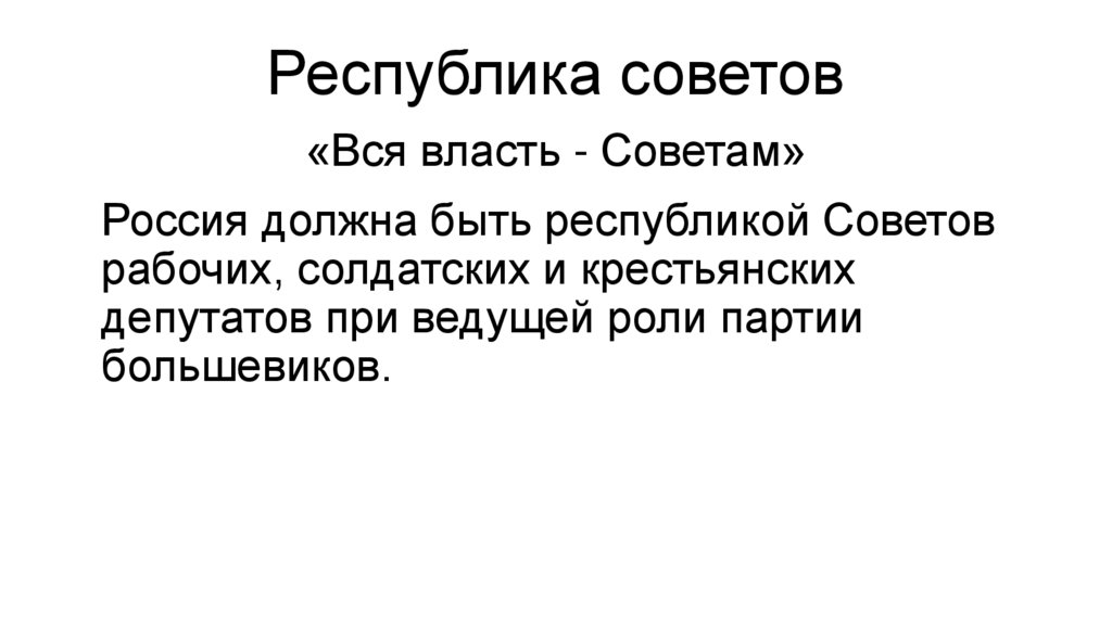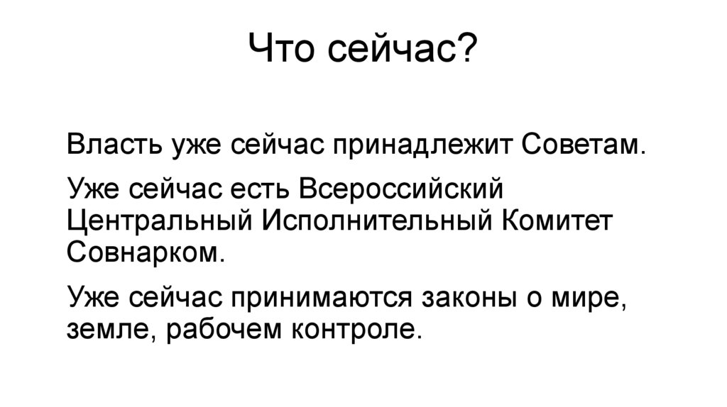 Что сейчас?Власть уже сейчас принадлежит Советам.