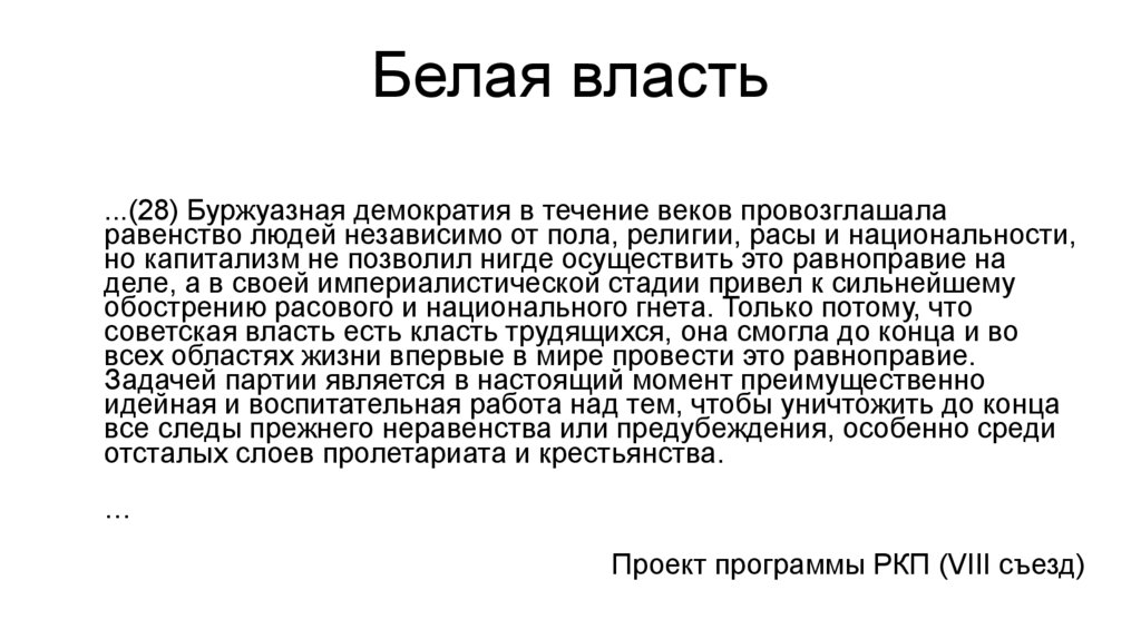 Белая власть...(28) Буржуазная демократия в течение веков провозглашала