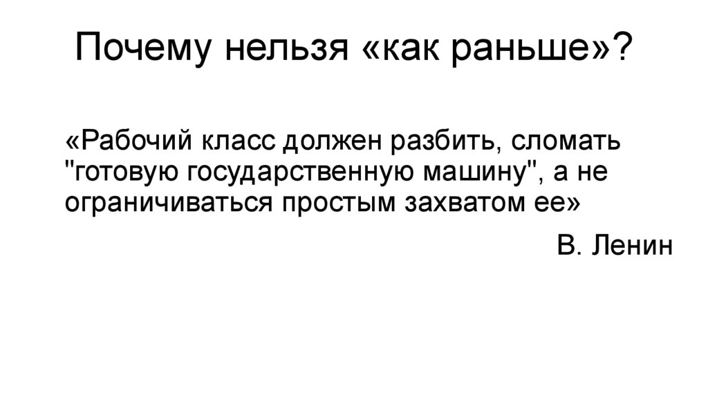 Почему нельзя «как раньше»?«Рабочий класс должен разбить, сломать