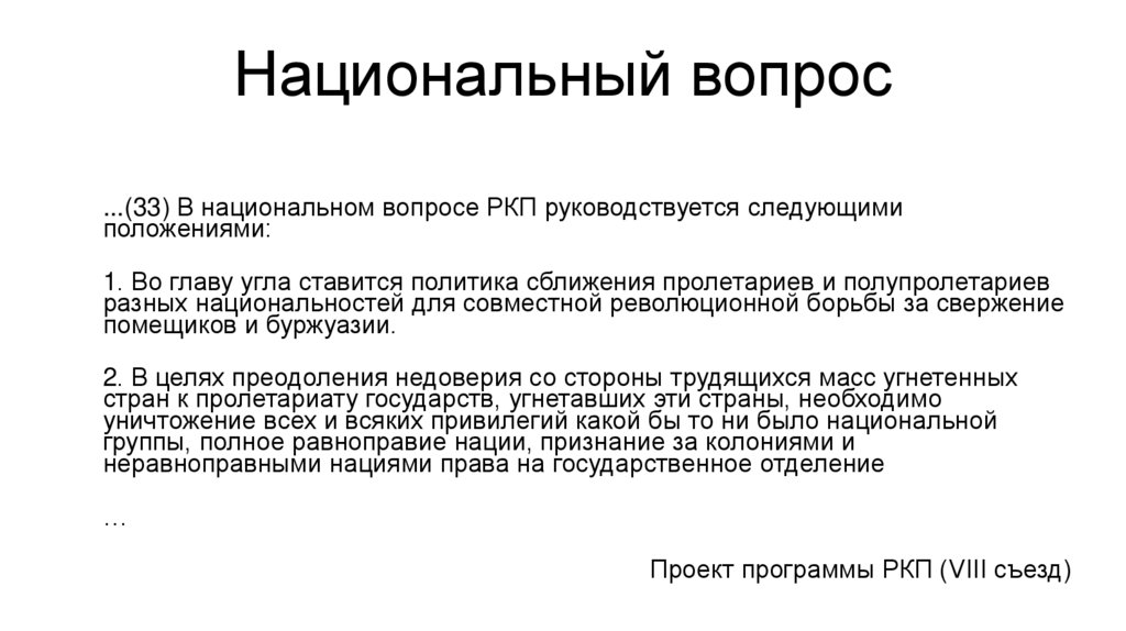 Национальный вопрос...(33) В национальном вопросе РКП руководствуется следующими