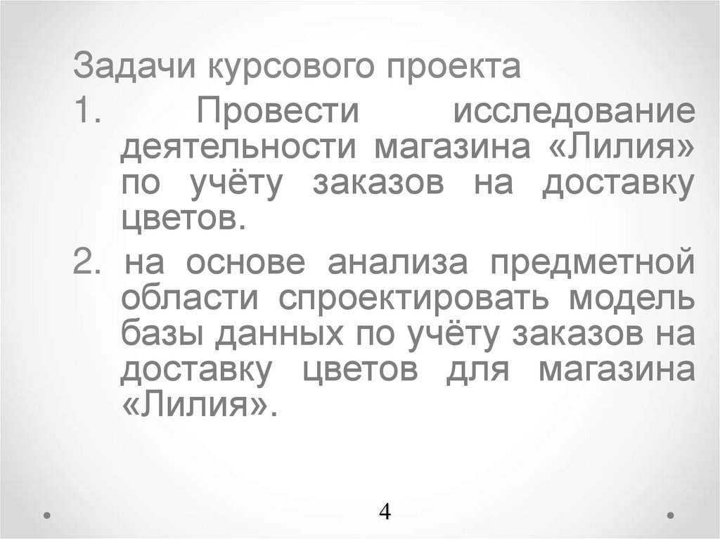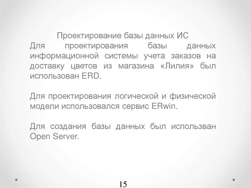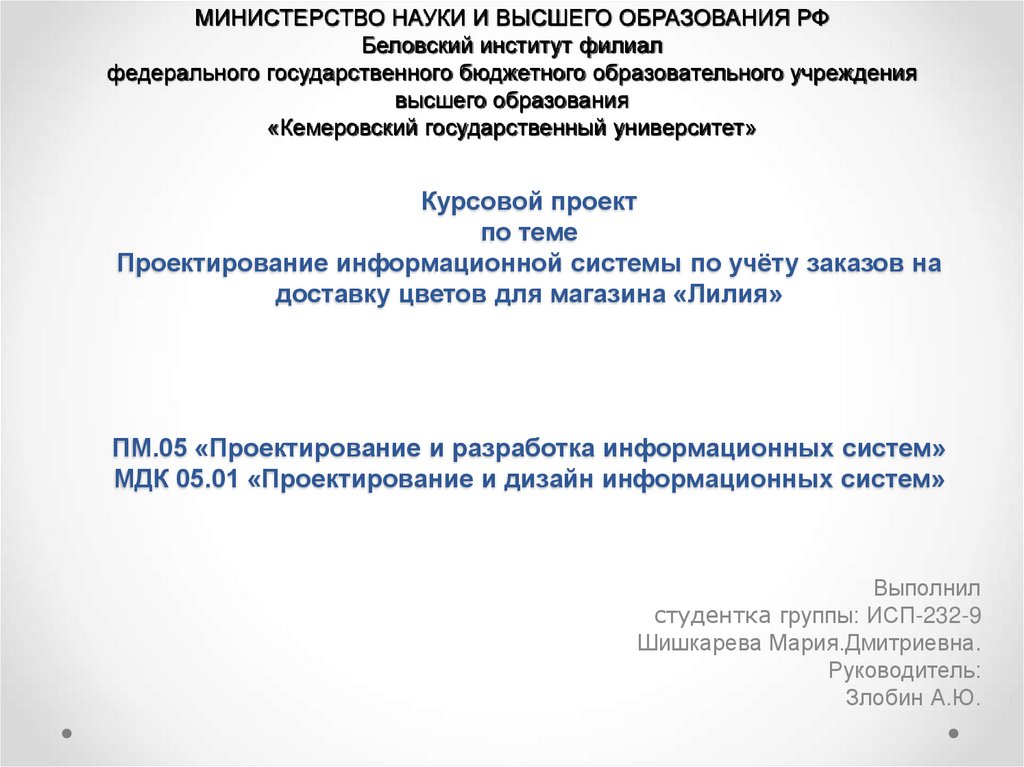 1. Курсовой проект по теме Проектирование информационной системы по учёту заказов на доставку цветов для магазина «Лилия» ПМ.05