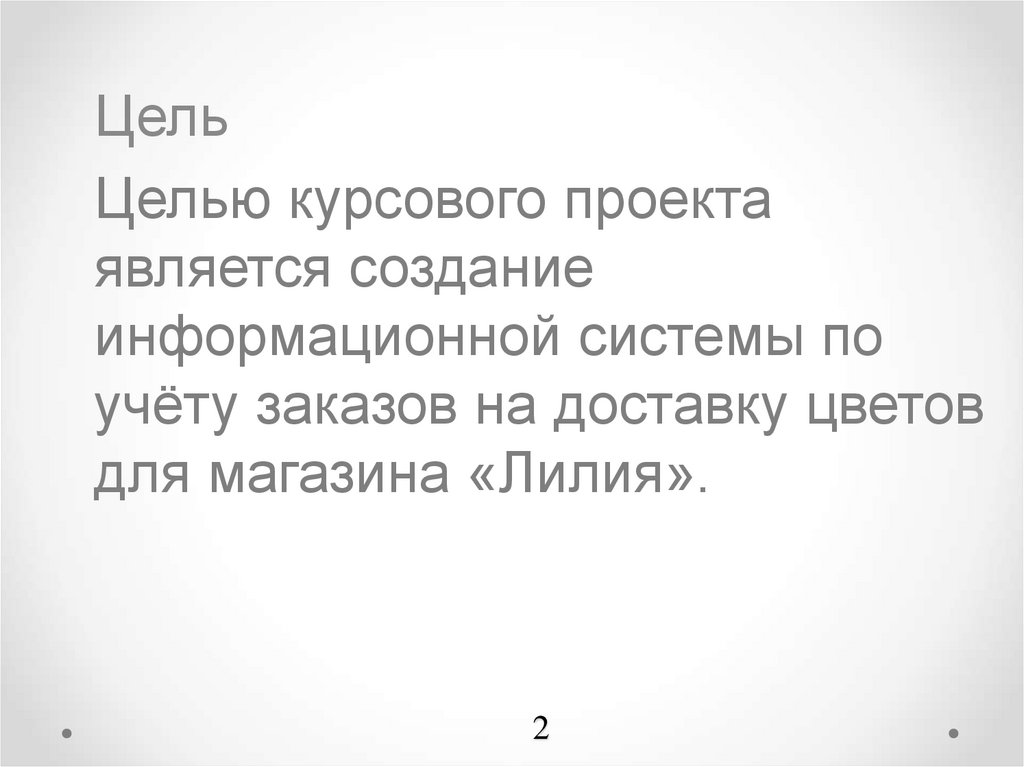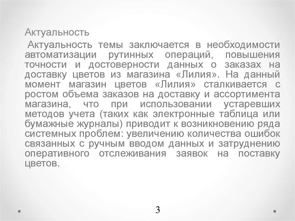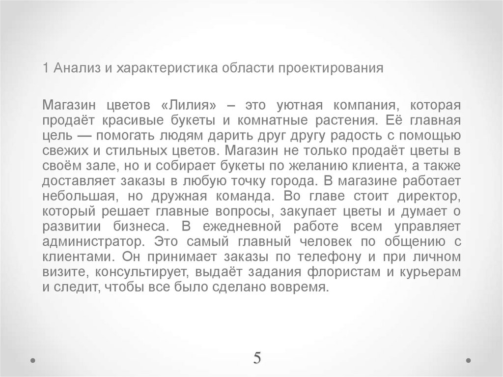 1 Анализ и характеристика области проектированияМагазин цветов «Лилия» – это уютная компания, которая