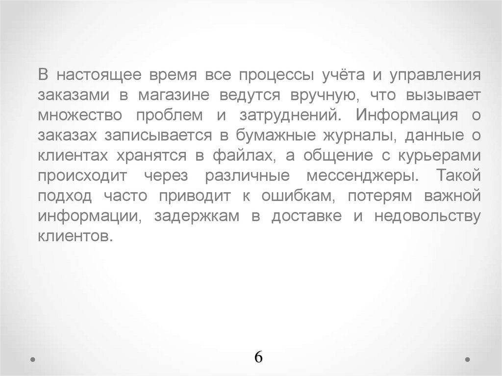 В настоящее время все процессы учёта и управлениязаказами в магазине ведутся вручную, что вызывает