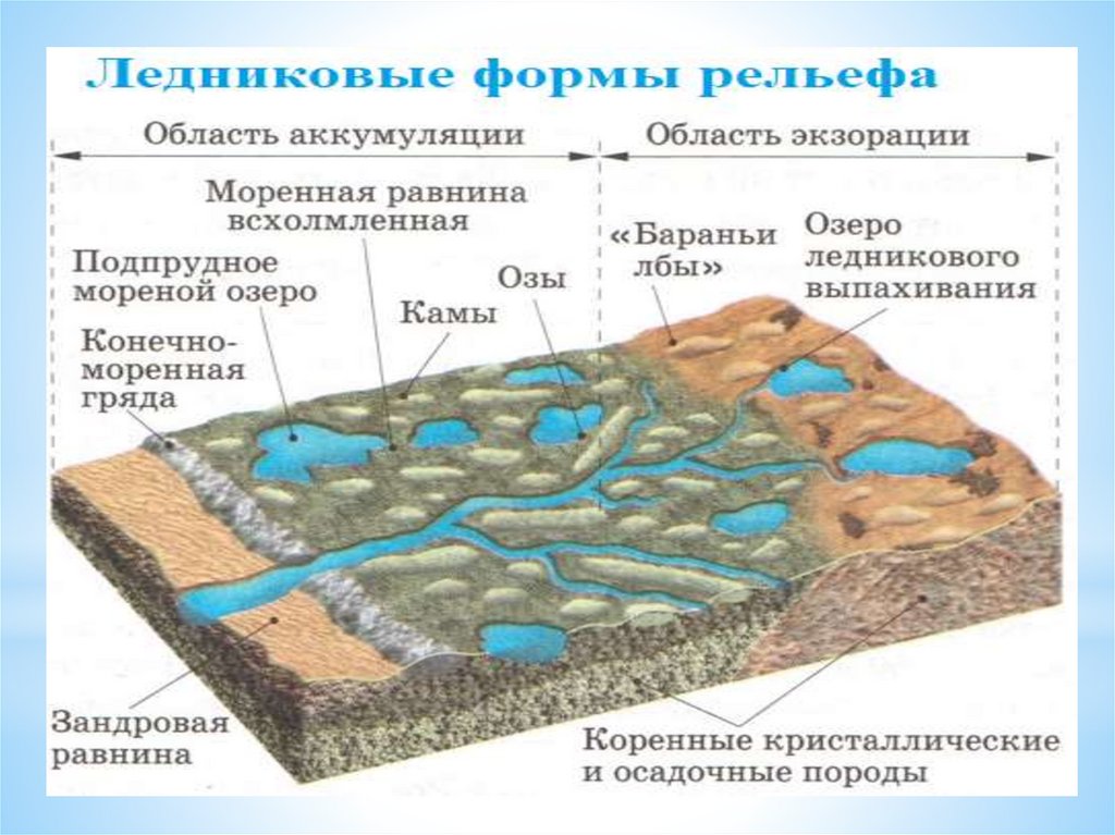 разнообразные формы рельефа путем эрозии и аккумуляции, то есть переноса