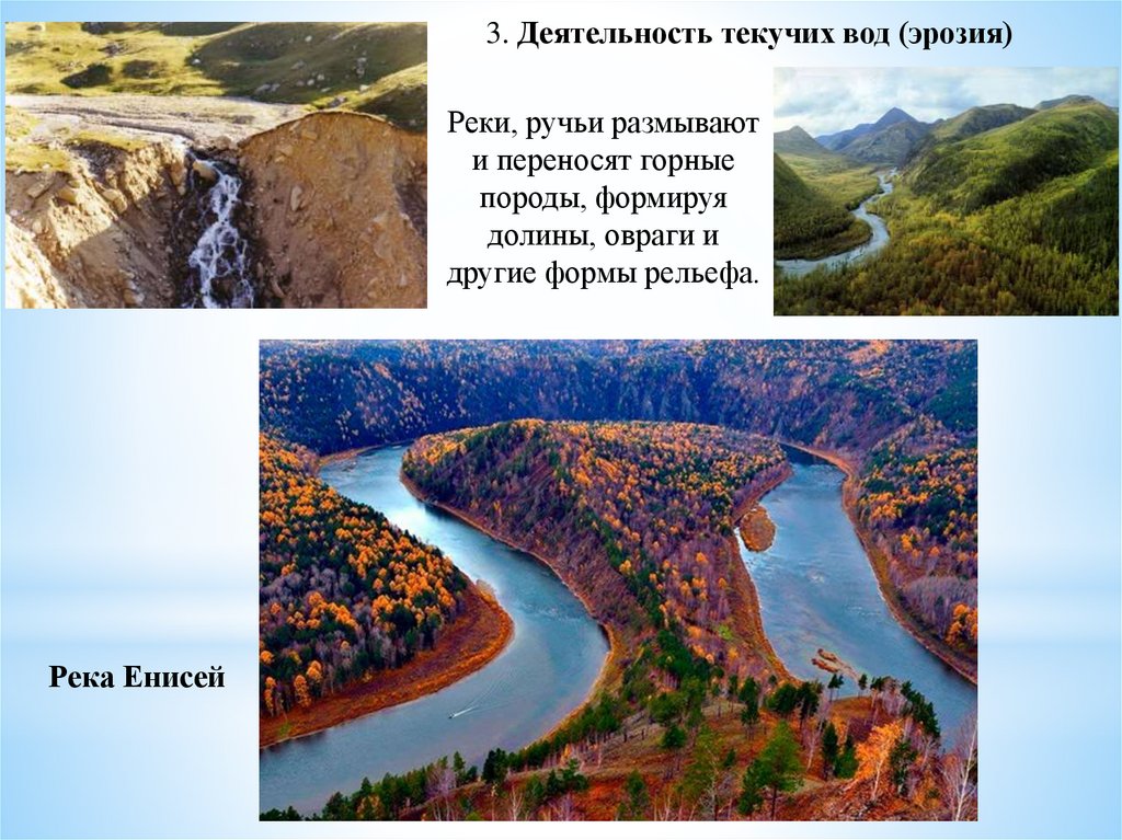 3. Деятельность текучих вод (эрозия)Реки, ручьи размывают