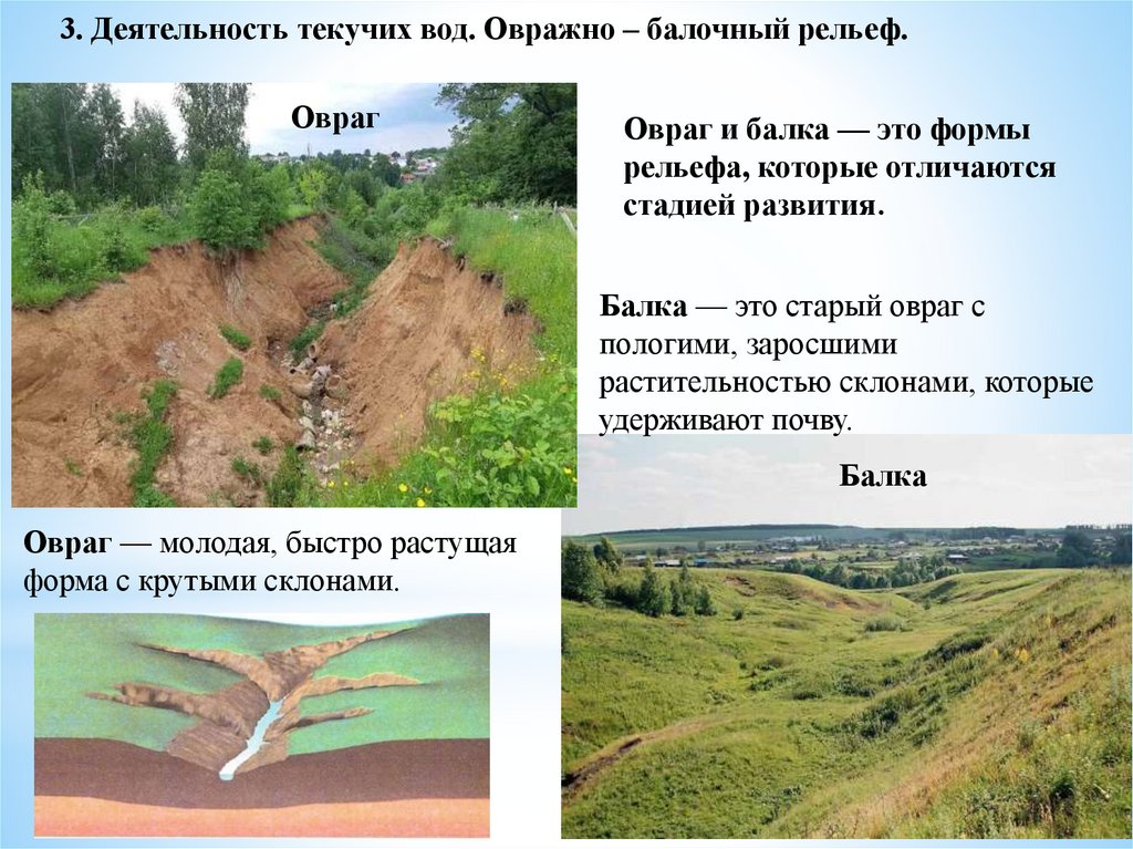 3. Деятельность текучих вод. Овражно – балочный рельеф.Овраг