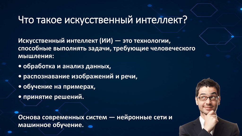 Что такое искусственный интеллект?Искусственный интеллект (ИИ) — это технологии,