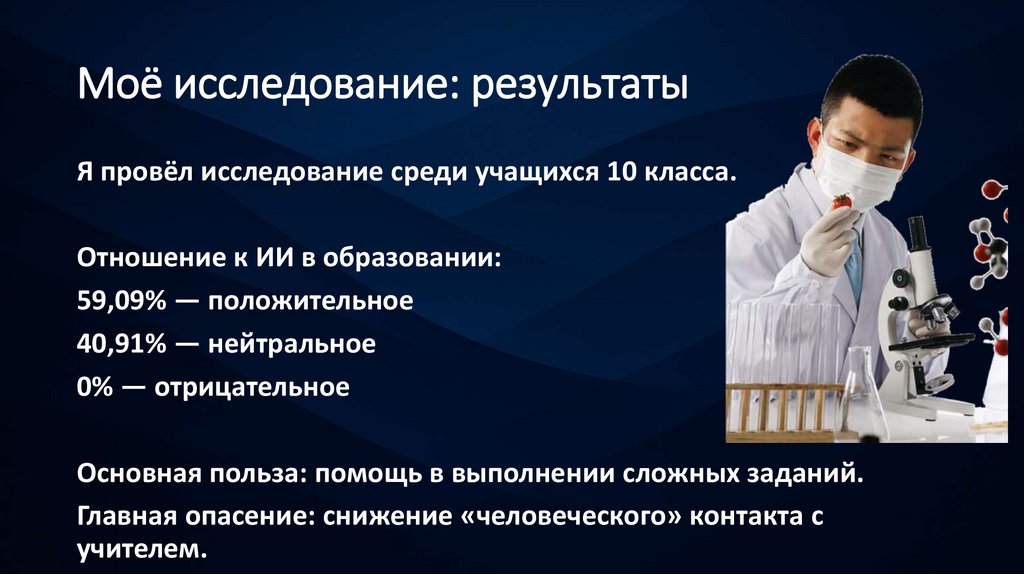 Моё исследование: результатыЯ провёл исследование среди учащихся 10 класса.