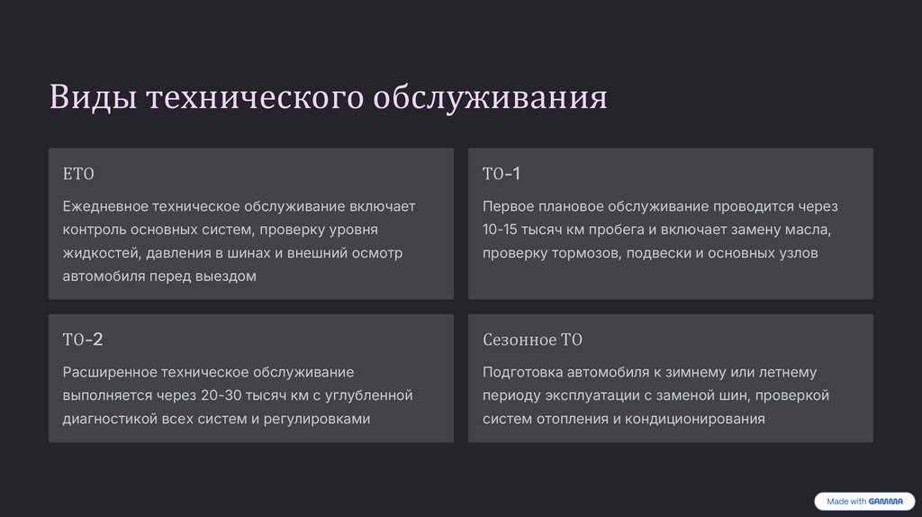 Виды технического обслуживанияЕТО