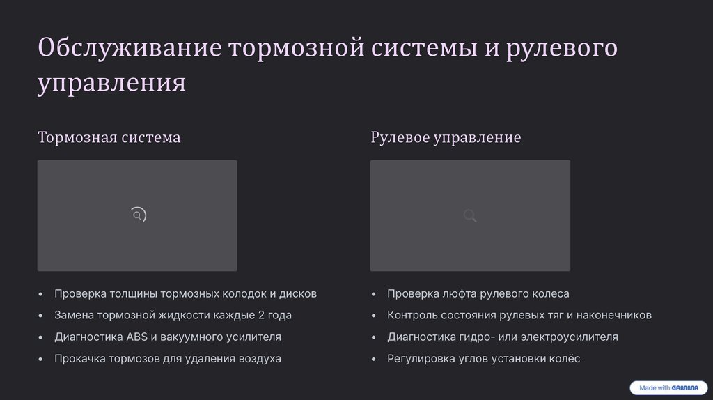 Обслуживание тормозной системы и рулевогоуправления