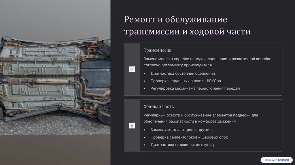 Ремонт и обслуживаниетрансмиссии и ходовой части