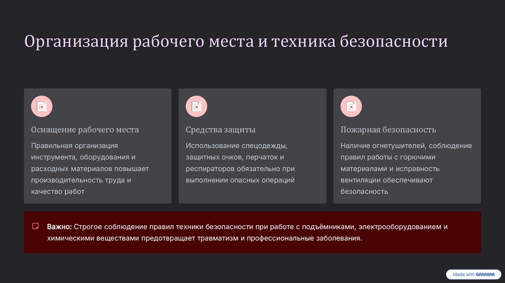 Организация рабочего места и техника безопасностиОснащение рабочего места