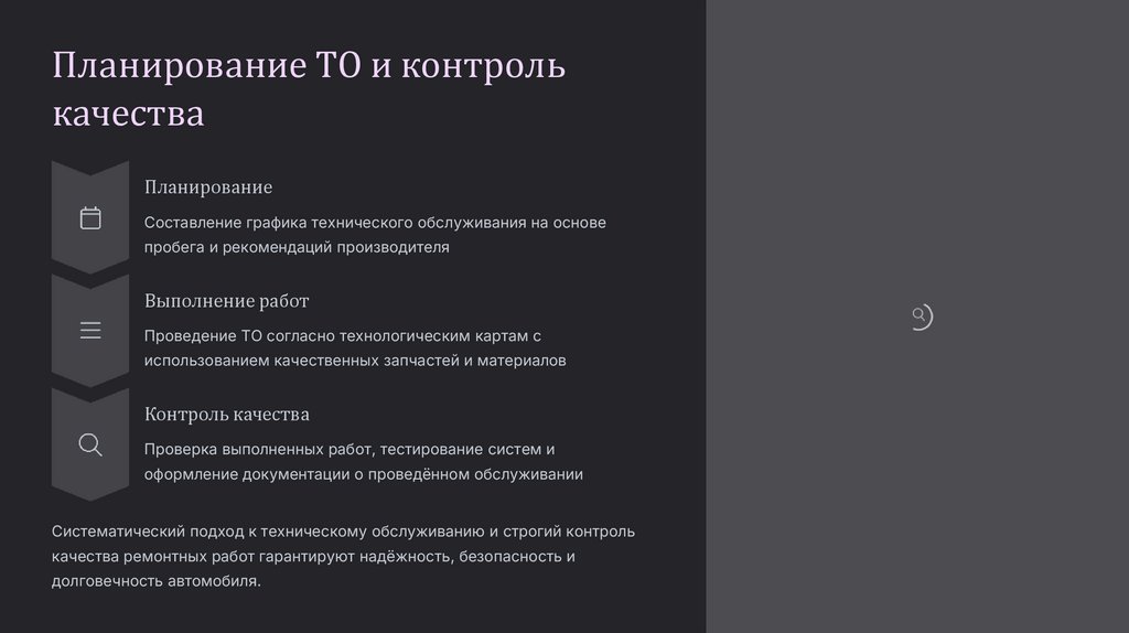 Планирование ТО и контролькачества