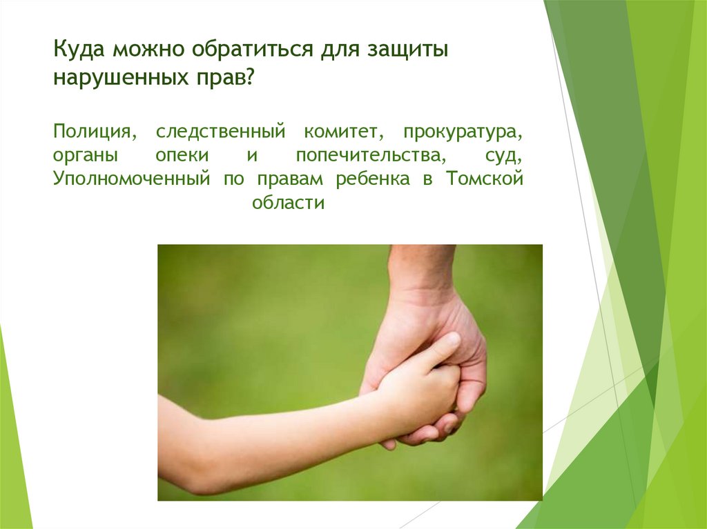 - самостоятельно обращаться в суд для защиты своих прав (ст. 56 СК РФ);