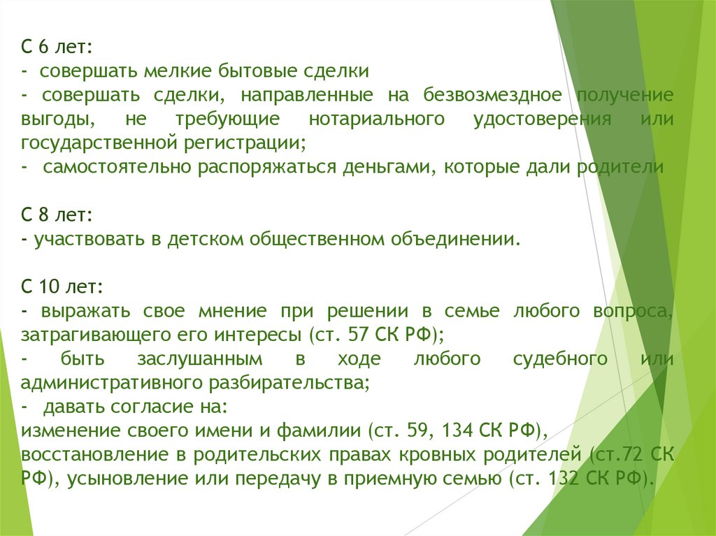 С 6 лет:- совершать мелкие бытовые сделки