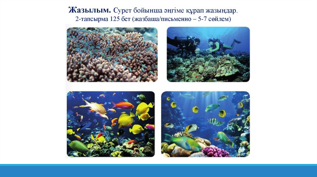 Жазылым. Сурет бойынша әңгіме құрап жазыңдар.2-тапсырма 125 бет (жазбаша/письменно – 5-7 сөйлем)