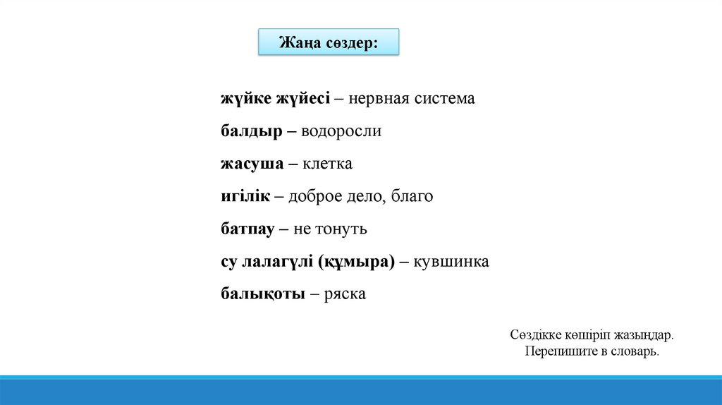 Жаңа сөздер:жүйке жүйесі – нервная система
