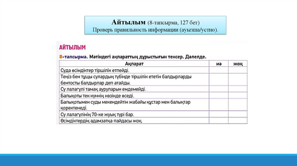 Айтылым (8-тапсырма, 127 бет)Проверь правильность информации (ауызша/устно).