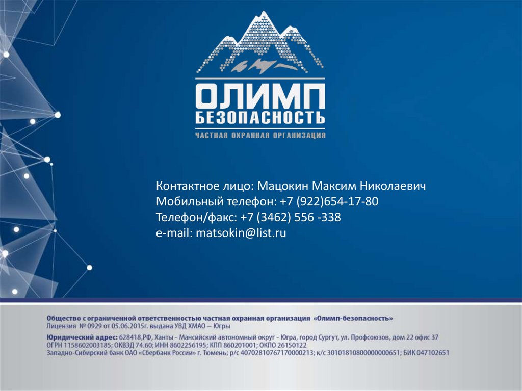 Контактное лицо: Мацокин Максим НиколаевичМобильный телефон: +7 (922)654-17-80