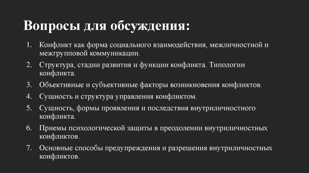 Вопросы для обсуждения:1. Конфликт как форма социального взаимодействия, межличностной и