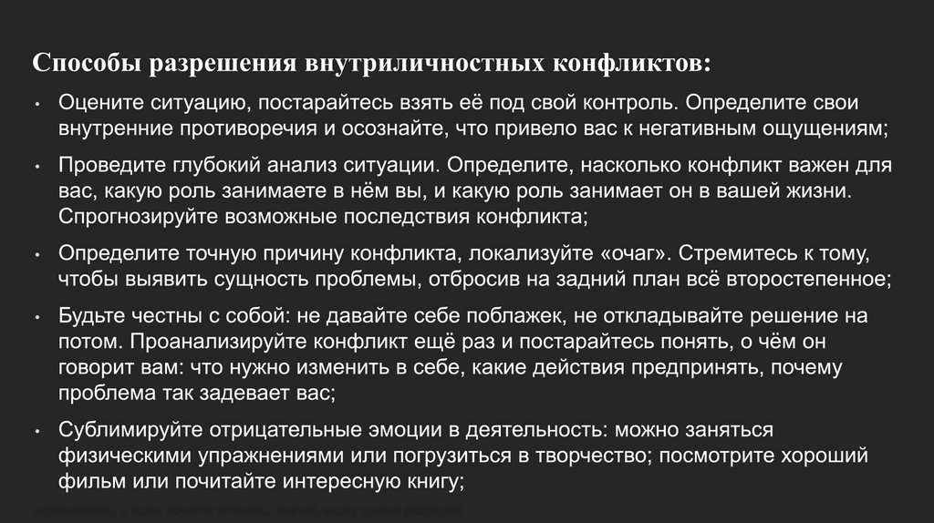 123. Назовите способы разрешения внутриличностных конфликтов и охарактеризуйте их