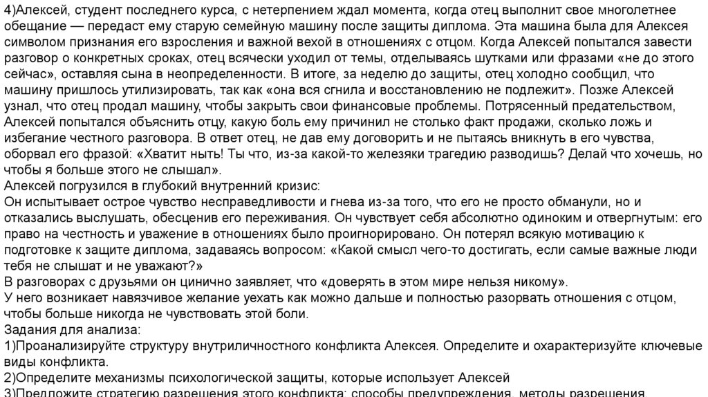 1)Проанализируйте структуру внутриличностного конфликта Алексея. Определите и охарактеризуйте ключевые