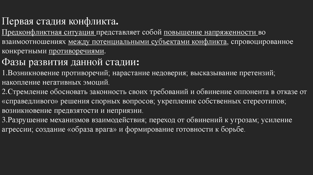 Первая стадия конфликта.Предконфликтная ситуация представляет собой повышение напряженности во
