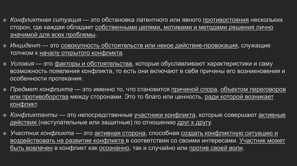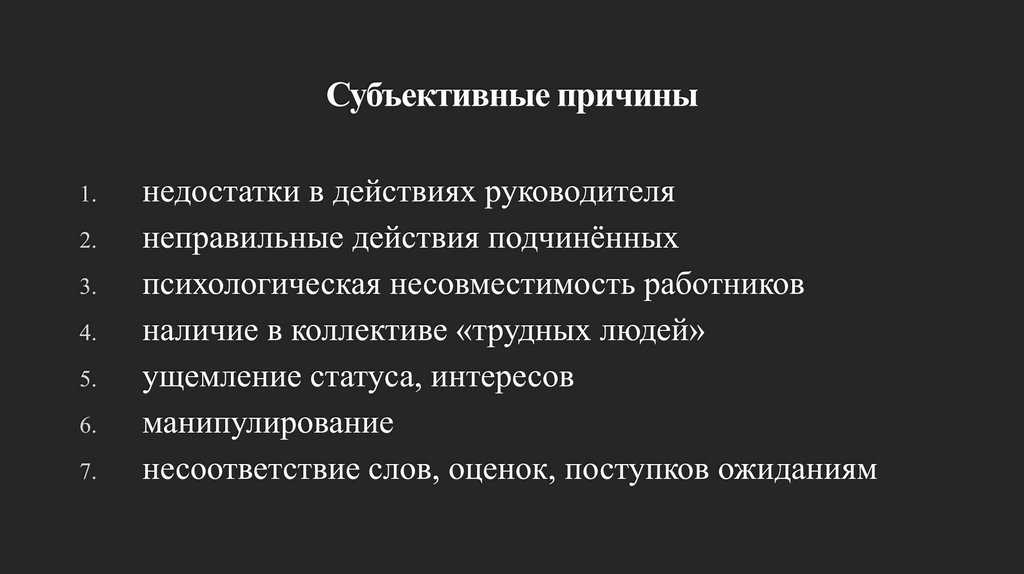 3. Объективные и субъективные факторы возникновения конфликтов.