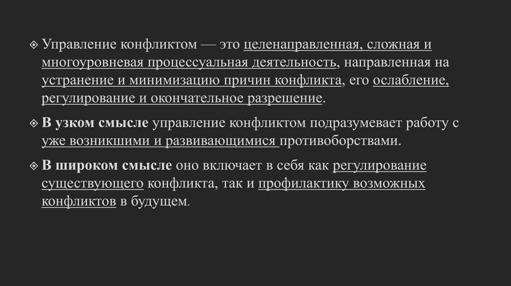 27. Дайте определение понятию «Управление конфликтом» в общем, узком и широком смысле