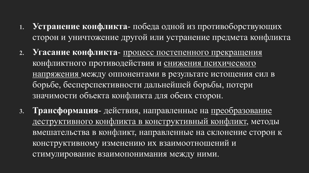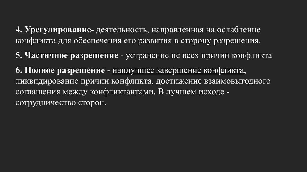 20. 3 стадия. Завершение конфликта. Завершение конфликта — это его окончание или прекращение. Оно может быть следствием достижения